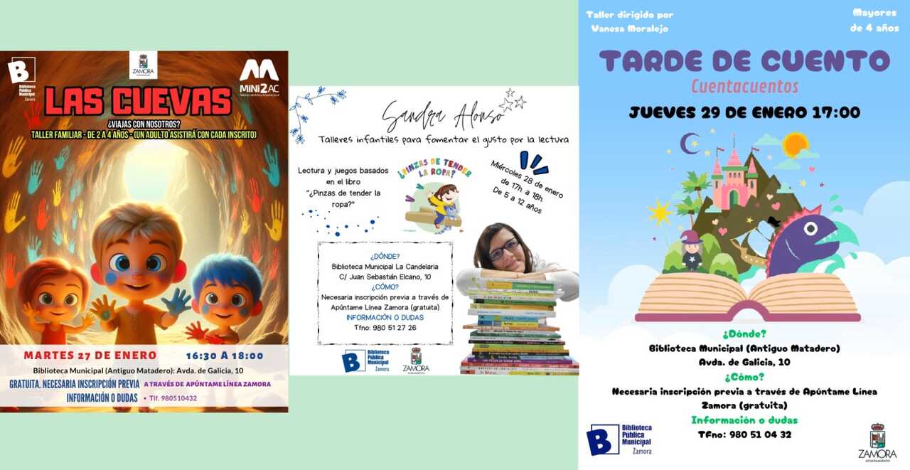 El Ayuntamiento de Zamora ha anunciado la apertura del plazo de inscripción para los talleres y cuentacuentos que se celebrarán en las bibliotecas municipales los días 27, 28 y 29 de enero.