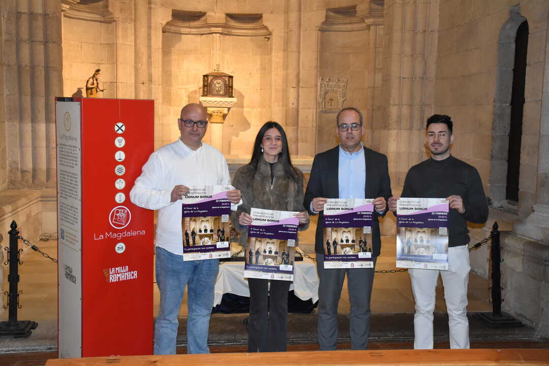La Fundación ZamorArte ha presentado el concierto que ofrecerá este domingo 22 de febrero, a las 20.00 horas, la agrupación musical Lignum Sonus en la iglesia de la Magdalena. El recital tendrá carácter benéfico y la aportación simbólica de cinco euros por entrada se destinará íntegramente a sufragar los trabajos de restauración del templo.