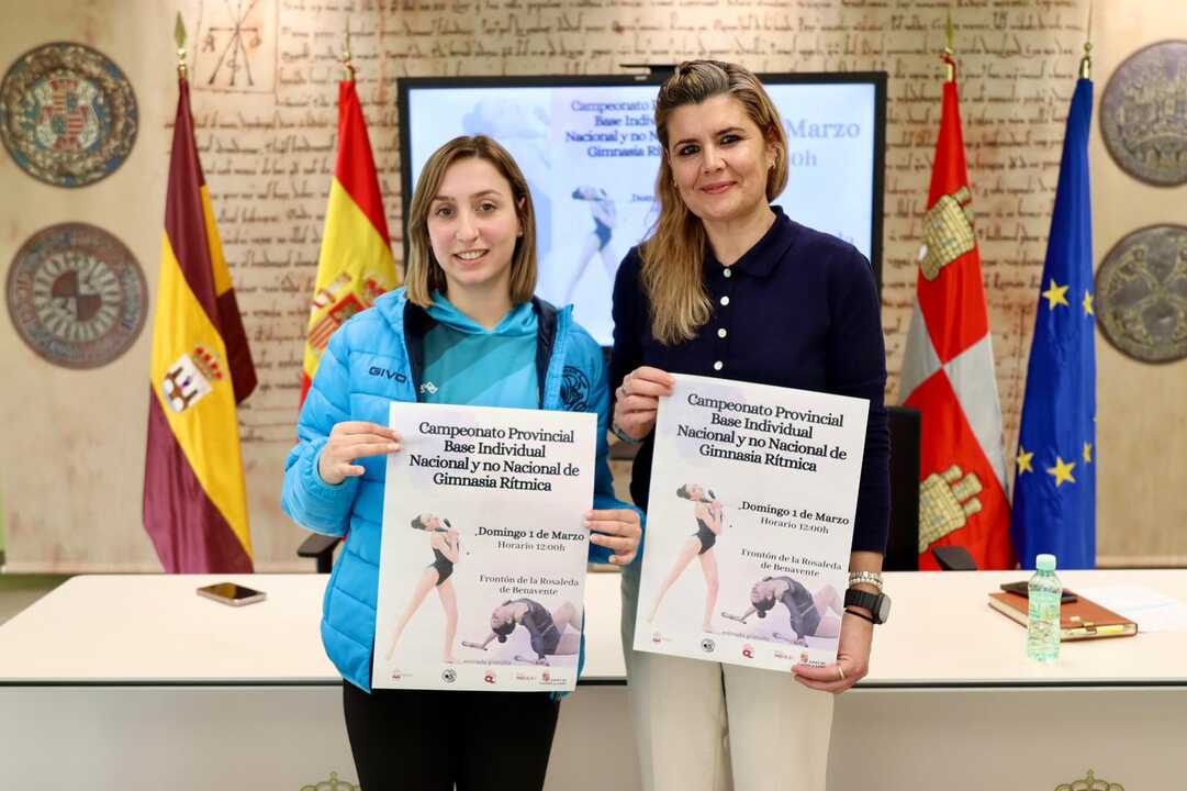 El evento, organizado por el Club Rítmica Benavente, se presentó esta mañana en el Edificio Administrativo El Ferial, con la participación de la concejala de Deportes, Elena Justo, y la entrenadora del club, Estefanía Moratinos.