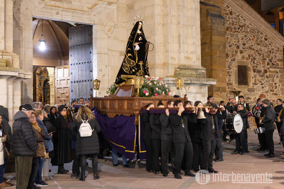 Benavente vivió este viernes una jornada especial e histórica con la Procesión de la Dolorosa, que se recupera por segundo año consecutivo tras más de 50 años sin celebrarse en la ciudad. Este año el buen tiempo permitió que la comitiva recorriera las calles con normalidad, devolviendo la emoción a vecinos y cofrades.