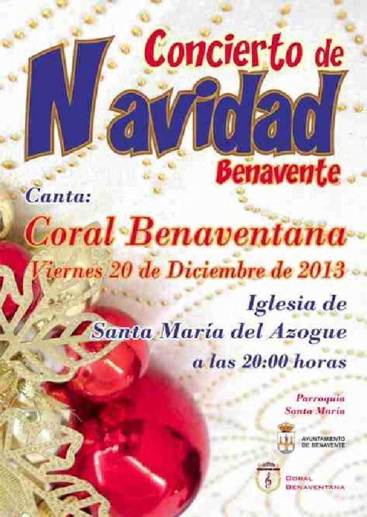 Los benaventanos podrán disfrutar del concierto navideño ofrecido por la Coral de Benavente el próximo 20 de diciembre en la iglesia de Santa María a las 20.00 horas. Además, el día 28 de diciembre ofrecerán un segundo pase en la iglesia de Barcial del Barco.