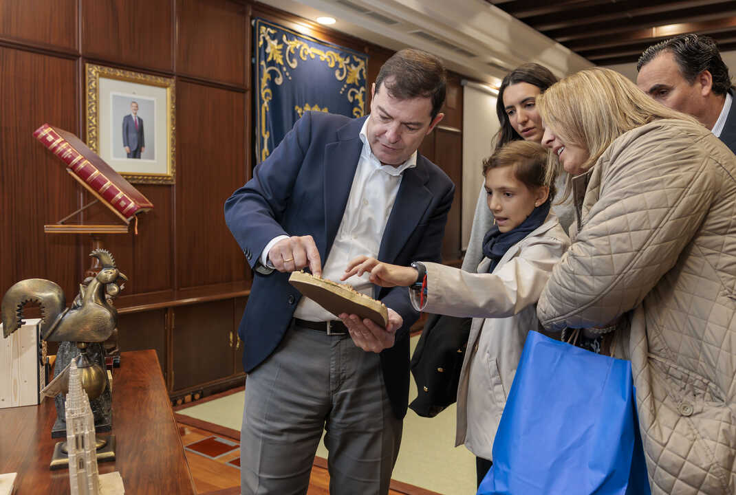 El presidente de la Junta de Castilla y León, Alfonso Fernández Mañueco, ha recibido este miércoles en la sede de la Presidencia a María Caamaño Múñez, reconocida con el Premio Castilla y León de Valores Humanos y Sociales en su última edición por su ejemplo de fortaleza y su compromiso con la lucha contra el cáncer infantil.