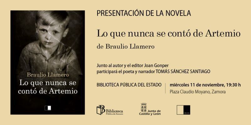 La Biblioteca Pública de Zamora acogerá la presentación del nuevo libro de Braulio Llamero, "Lo que nunca se contó de Artemio", en la que participará, además del autor zamorano, el editor Joan Gomper y el poeta zamorano Tomás Sánchez Santiago.