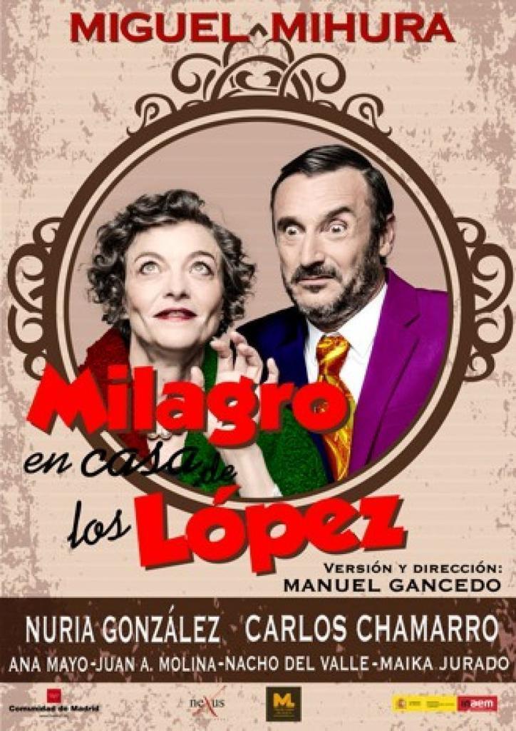 Nuria González y Carlos Chamarro, dirigidos por el conocido actor y director Manuel Gancedo, representarán en el Teatro Ramos Carrión de Zamora, este sábado 29 de abril a las 20:00h, la comedia de Miguel Mihura 'Milagro en casa de los López'.
