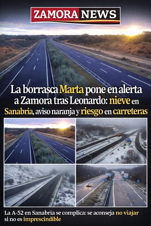 La borrasca Marta pone en alerta a Zamora tras Leonardo: nieve en Sanabria, aviso naranja y riesgo en carreteras