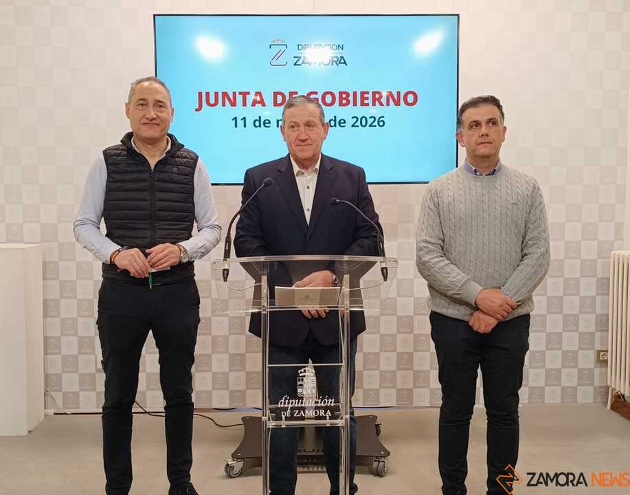 El presidente de la Diputación de Zamora, Javier Faúndez, acompañado por los diputados Emilio Fernández y Ramiro Silva, dio a conocer este miércoles las principales decisiones adoptadas en la Junta de Gobierno, un conjunto de acuerdos que movilizan más de 1,5 millones de euros destinados a reforzar servicios en el medio rural, apoyar al tejido asociativo y deportivo de la provincia, mejorar los caminos rurales e impulsar iniciativas de desarrollo económico.