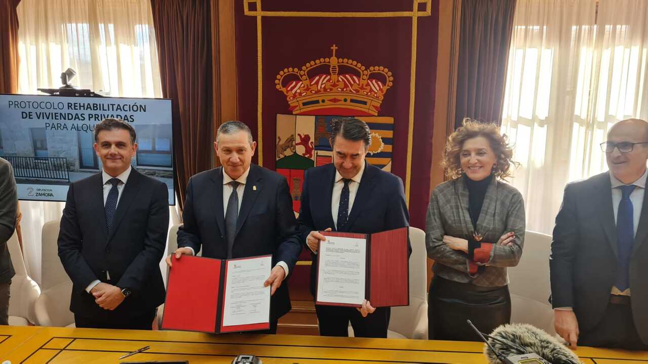 La Diputación de Zamora y la Junta de Castilla y León han dado este viernes el primer paso para poner en marcha un proyecto piloto destinado a paliar la falta de vivienda en el medio rural, mediante la rehabilitación de inmuebles de titularidad privada para destinarlos al alquiler.