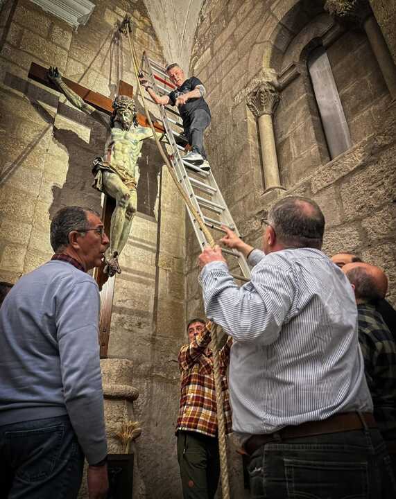 Este pasado lunes, la Hermandad de la Buena Muerte llevó a cabo uno de los actos tradicionales previos a la Semana Santa con el descenso del Santísimo Cristo de la Buena Muerte en la iglesia de San Vicente.