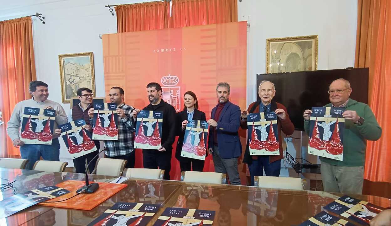 Zamora abrió la Cuaresma con la presentación del cartel de la Tertulia del Cofrade, que vuelve a plasmar imágenes de la Cofradía del Silencio, en el que Cristo de las Injurias se convierte en protagonista absoluto. El acto, que se presentó en el Ayuntamiento con la presencia del concejal Diego Bernardo, que sustituyó a la edil de Cultura, María Eugenia Cabezas, contó con la presencia del nuevo presidente de la Tertulia del Cofrade, Ángel López, del autor del cartel, Sergio Ramos, y de José Mariano Ramos, vicepresidente de la Cofradía. También participaron representantes de la Junta de Semana Santa, encabezada por Israel López, así como colaboradores habituales como la Fundación Caja Rural.