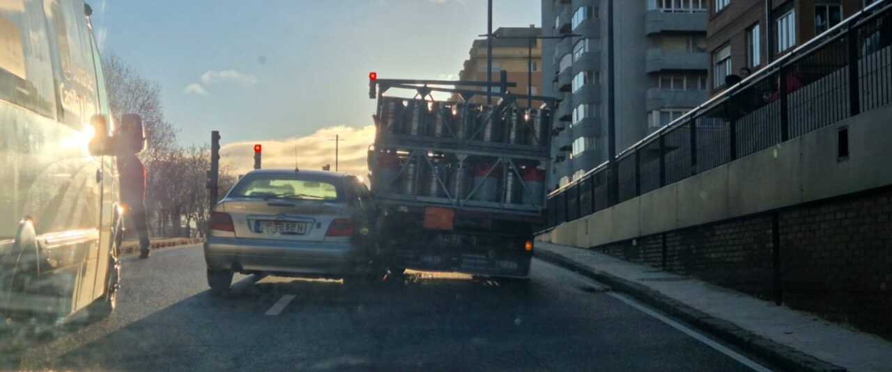 Choque contra un camión de butano en plena hora punta en Zamora tras el deslumbramiento del sol