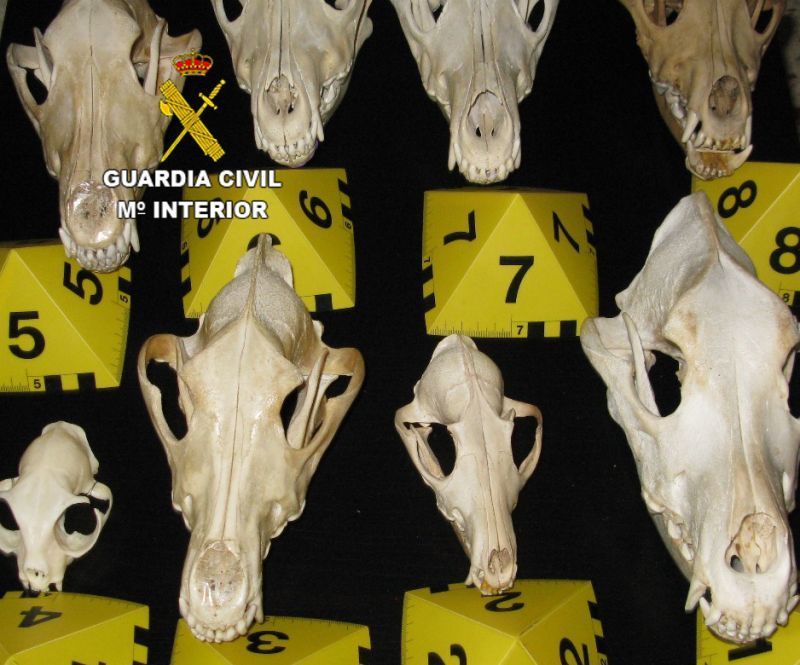 De los nueve cráneos inmovilizados, solo a 2 de ellos le consta parte de la documentación obligatoria para su tenencia. Los efectos reseñados han sido aprehendidos e inmovilizados a disposición de la Autoridad CITES-SOIVRE (CATICE VALLADOLID) y del Servicio Territorial de Medio Ambiente de la Delegación Territorial de Zamora