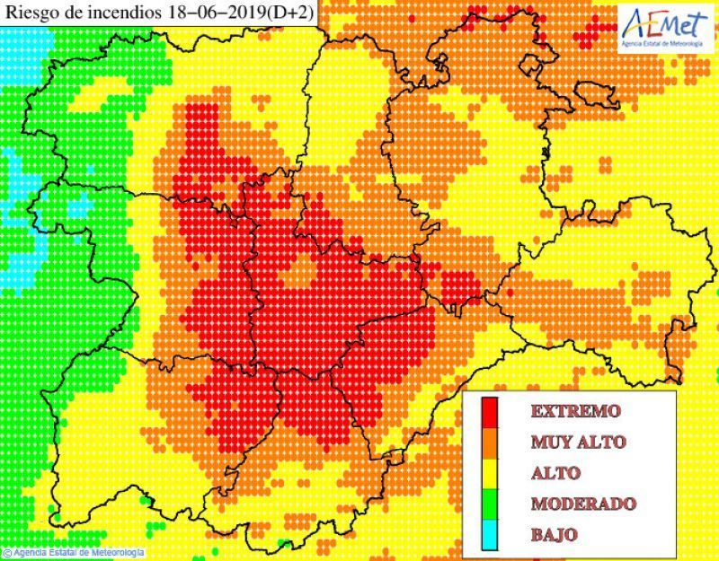 Hoy lunes en parte de Castilla y León es riesgo localmente EXTREMO de incendio es tónica dominante y mañana 18/06/2019 el riesgo será EXTREMO y generalizado las rachas de viento superiores a los 30 km/h las temperaturas por encima de los 30°C y la humedad relativa del aire que superarará el 30%.