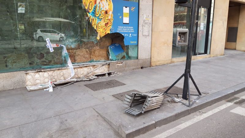 La pasada madrugada un vehiculo que circulaba por la calle Alfonso XI hacia la Plaza Alemania, perdió el control y chocó contra el escaparate de una oficina bancaria.