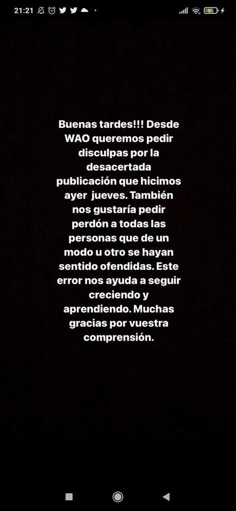"No ha habido en ningún momento intención de generar malestar con nadie, solo queríamos devolver parte de la fidelidad y del cariño que tenemos a todos nuestros clientes, ( sean mujeres, hombres o cualquier otro tipo de género) en este caso eran además, primero las mujeres y después los hombres, sentimos enormemente la interpretación que se le ha dado de forma maliciosa, y para nada el objetivo, ni nada que ver con la interpretación machista o feminista que se haya querido entender por parte de algunos sectores de la sociedad".