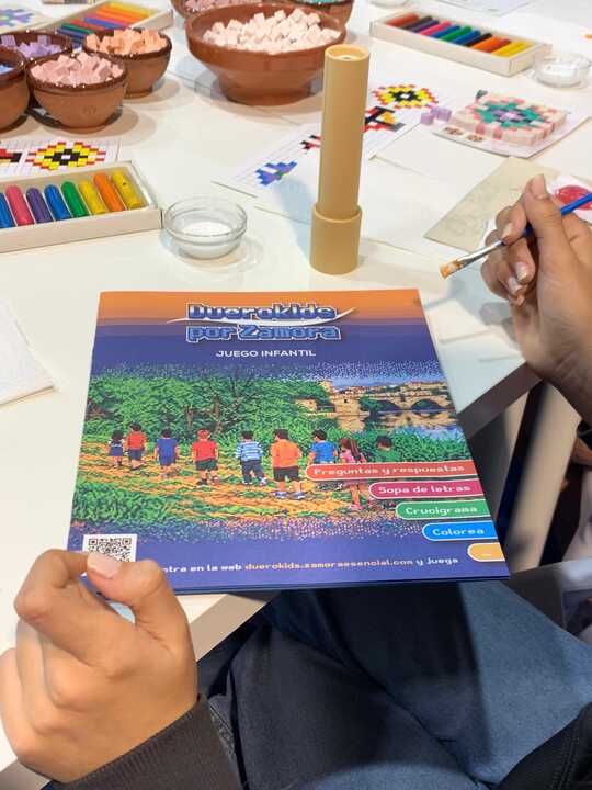 Durante la mañana de hoy, se ha desarrollado el taller infantil Duero Kids, en el que los niños han podido colorear enclaves emblemáticos como San Pedro de la Nave y las Mascaradas, además de participar en sopas de letras, crucigramas, preguntas y respuestas y otras actividades interactivas, descubriendo Zamora de una forma divertida y atractiva.