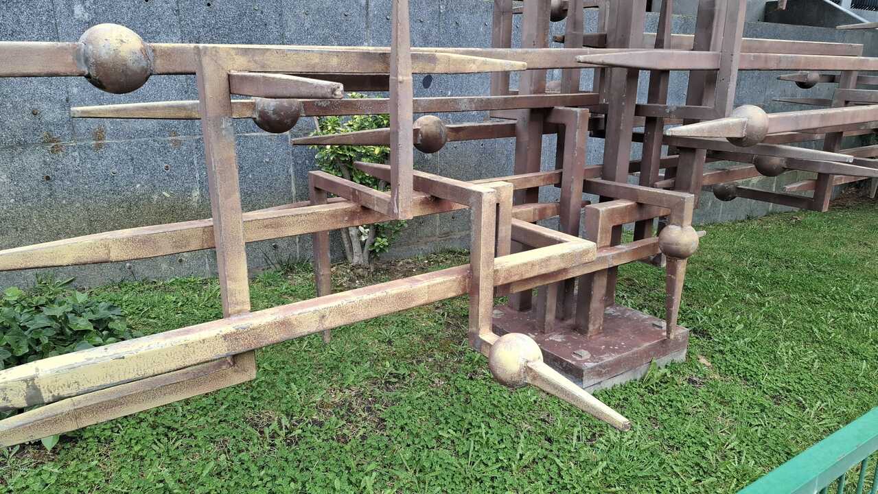 Más de cuatro décadas después de su instalación, la escultura que preside la entrada al inmueble administrativo muestra signos visibles de desgaste. El paso del tiempo y la exposición permanente a la lluvia, el frío y el calor han dejado huella en la estructura metálica, cuyo estado actual evidencia un deterioro progresivo.