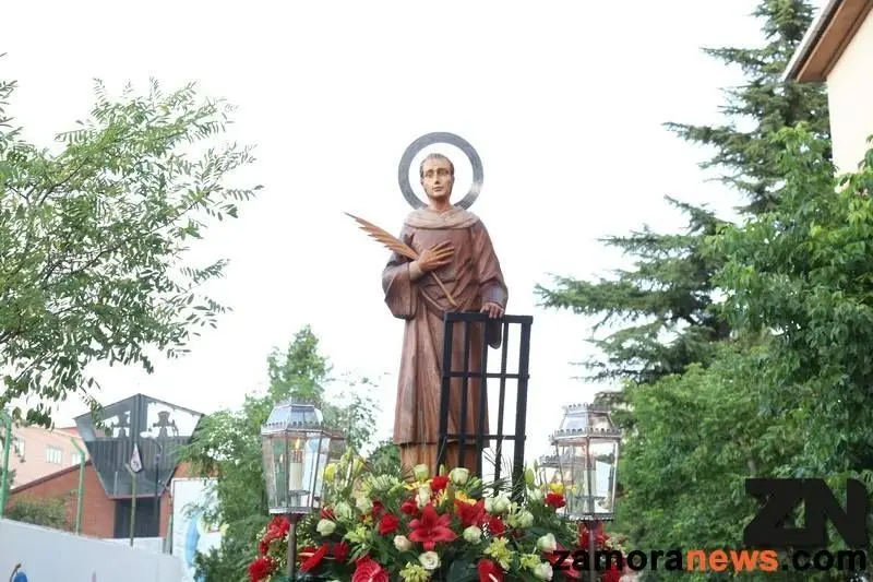 Ventanas engalanadas y gran devoción por el santo que murió quemado en una parrilla y que da nombre al barrio desde la década de los 70 esperarán el paso del santo esta tarde por las calles del barrio obrero de Zamora.