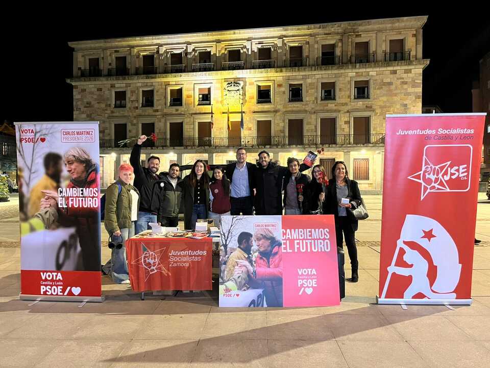 Juventudes Socialistas de Zamora y Juventudes Socialistas de Castilla y León han protagonizado una jornada informativa en el centro de Zamora para acercar a los jóvenes el programa electoral de Carlos Martínez, candidato del PSOE a la Presidencia de la Junta, poniendo el foco en vivienda, empleo y educación.