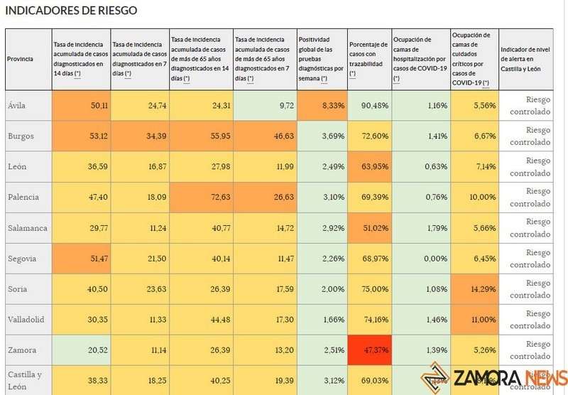 Comienza octubre con mal pie. Zamora retrocede en algunos indicadores de riesgo y continúa con el índice de reproducción del virus disparado con 1,11, el tercero más elevado de Castilla y León y por encima de la media regional del 0,97.
