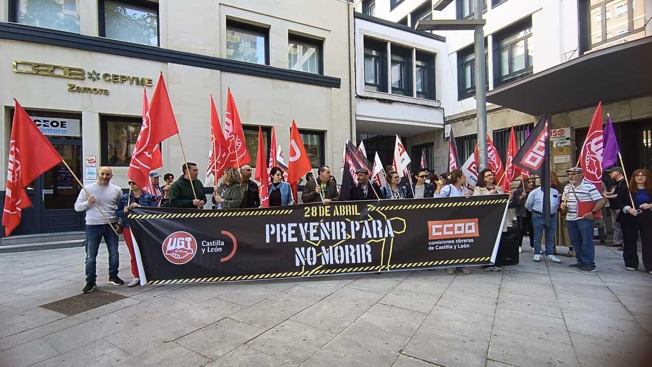 Las organizaciones sindicales CCOO y UGT han situado de nuevo la seguridad y la salud en el trabajo en el centro del debate en Zamora con una concentración en la Plaza de Alemania, en el marco del Día Mundial de la Seguridad y la Salud en el Trabajo y como antesala de las movilizaciones del 1 de mayo. En el acto, los secretarios provinciales Jesús Carretero (CCOO) y Juan Escudero (UGT) han advertido del incremento de los riesgos psicosociales y del creciente impacto de la salud mental en el ámbito laboral, con especial incidencia de la ansiedad, la depresión y el estrés.