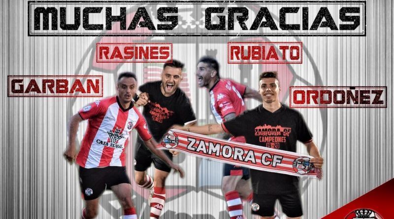Rubiato, Rasines, Ordoñez y Garban no continuarán en el Zamora CF de cara a la próxima temporada.