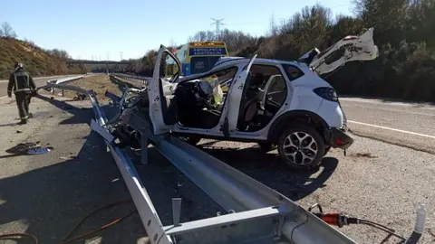 Sucesos Un accidente con vuelco y salida de vía en la A-52 un varón portugués socorrido por los bomberos de Rionegro Paco Colmenero 16/ene/21 14:17
