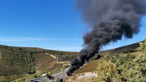 Sucesos Corte en la A52 en la subida de la Canda un camión en llamas condiciona el trásito en los dos carriles Paco Colmenero 11/sept/20 13:26