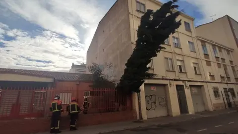 Sucesos Cortada la Calle Hernán Cortés un ciprés cae sobre la valla del colegio Miguel de Cervantes Paco Colmenero 21/ene/20 11:41
