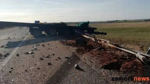 Sucesos Accidente en la A11 el choque entre un camión y una furgoneta que se salda al menos dos heridos de consideración Paco Colmenero 06/jun/19 8:41