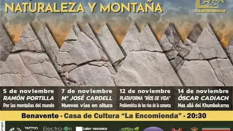 Benavente El CDMB ha organizado las XII Jornadas de Naturaleza y Montaña que se celebrarán durante el mes de noviembre de 2019 Redacción 24/oct/19 12:57
