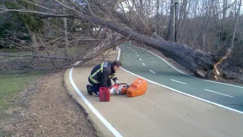 Benavente Los bomberos retiran el árbol derribado en el parque cerca de las piscinas Redacción 01/feb/14 13:08
