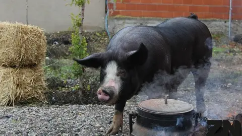 Sopas de ajo y chichas de matanza en la comida popular en Monfarracinos en honor a San Martín