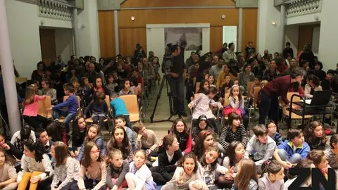 Niños de primaria asisten a la grabación del vídeo de canciones de Susa Herrera en la Biblioteca