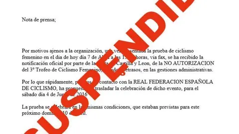 Deportes Suspendida y pospuesta para el 10 de junio la prueba de ciclismo femenino del domingo Redacción 07/abr/16 23:17