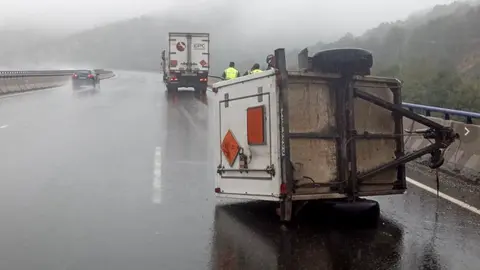 Sucesos Un camión cargado con mercancías peligrosas pierde su remolque en la Portilla de la Canda Redacción 20/ago/20 12:39