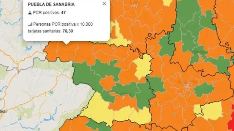Zamora Puebla de Sanabria se une a las ZBS en naranja con 47 positivos, Toro, Alcañices Tábara y Zamora Norte en verde y sin casos Paco Colmenero 04/sept/20 14:03