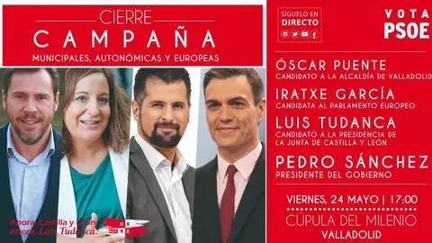 El PSOE de Castilla y León cierra campaña esta noche en Valladolid con la presencia de Pedro Sánchez