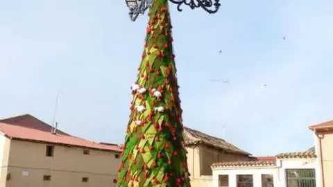 Provincia En Villamayor de Campos colocan un árbol de Navidad de cinco metros hecho a ganchillo Redacción 14/dic/18 9:40