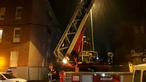 Sucesos Los bomberos aseguran una cornisa y un canalón que podían desprenderse en un edificio de la calle San Andrés Paco Colmenero 15/may/18 22:29
