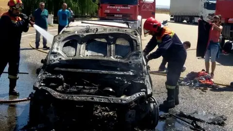 Sucesos Vacaciones truncadas en la A6, un vehículo se incendia en el área de descanso de Cotanes Paco Colmenero 19/ago/15 22:40