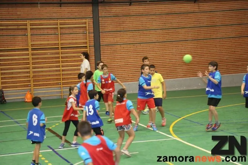 El campus del Balonmano Zamora, repleto de niños que quieren disfrutar de este deporte durante el verano, muchos de ellos canteranos del club pero otros sólo interesados en conocer este deporte, está llenando el Manuel Camba después de que los organizadores se vieran desbordados de peticiones de niños que querían disfrutar de este campus.