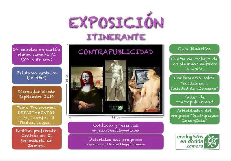 Se trata de una interesante muestra itinerante de carteles informativos sobre la contrapublicida, la sociedad de hiperconsumo y la publicidad con un componente también didáctico y dirigida especialmente a estudiantes de Secundaria.