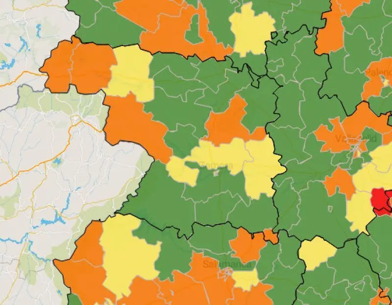 Los alcaldes de las zonas en las que aparecen los colores amarillos y naranjas se quejan de la falta de información de parte de la Consejería de salud y si que efectivamente promulgan bandos en los que hay que entender que las autoridades municipales llegan hasta donde llegan y mantienen una calma muy tensa que provoca nervios entre la población ante la inseguridad y la falta de información no achacable a los ayuntamientos sino a la LOPD.